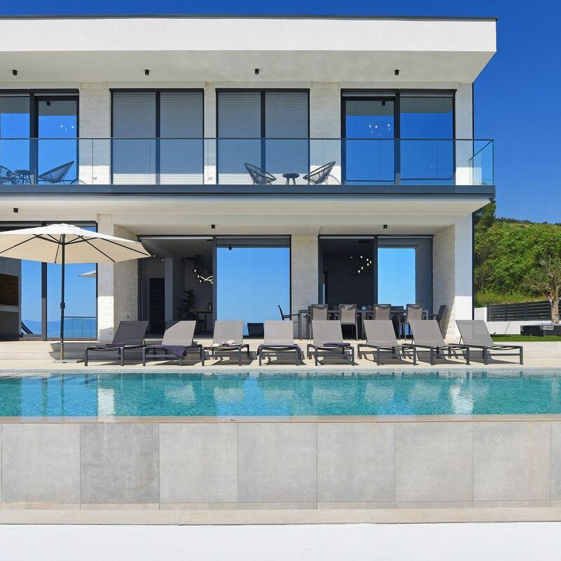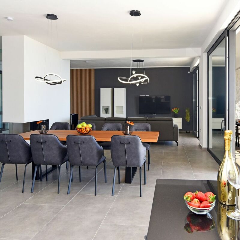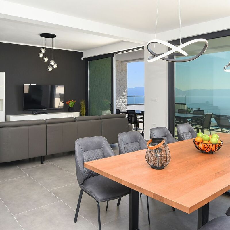 VILLA LUCIJANA in Crni offers luxurious accommodations with a private infinity pool and stunning sea views from the terrace. This serene 4-bedroom retreat features free WiFi, a satellite flat-screen TV, a washing machine, and a fully equipped kitchen. Guests can enjoy foosball and table tennis in the garden, which also offers outdoor play equipment for relaxation. The villa includes a private entrance, soundproofing, and complimentary private parking.